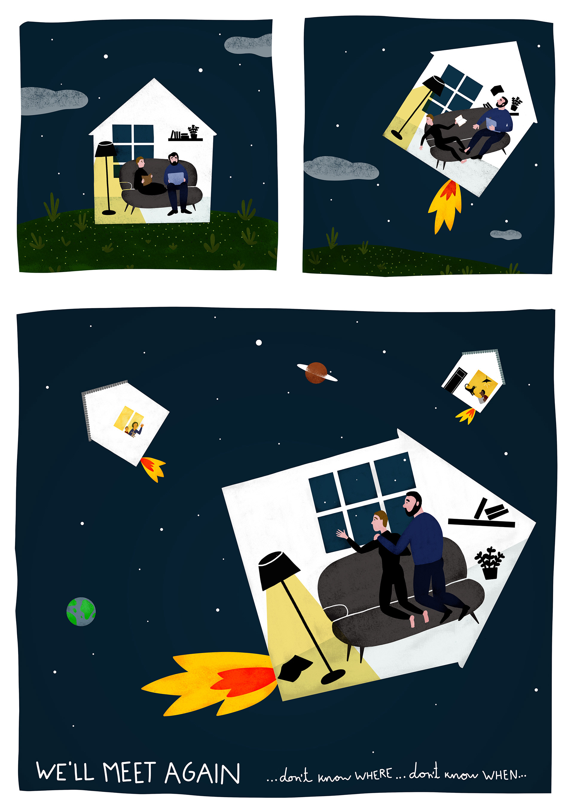 Empezamos el confinamiento el 12 de marzo. A veces nos imagino encerrados en nuestras casas como viajeros extraños encapsulados. No sabemos cómo será el mundo después del covid19. Me recuerda a aquella canción...'We'll meet again, don't know where, don't know when...' Quién sabe cómo acabará nuestra canción.