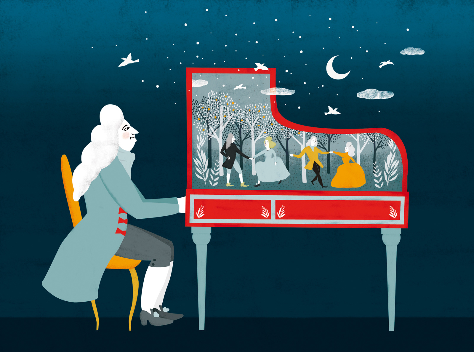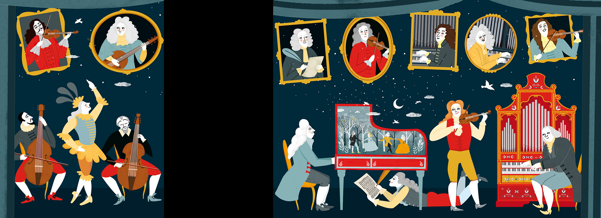 Ilustración promocional para el concierto familiar "Händel & Friends". Temporada 2015/16, L'Auditori, Barcelona.