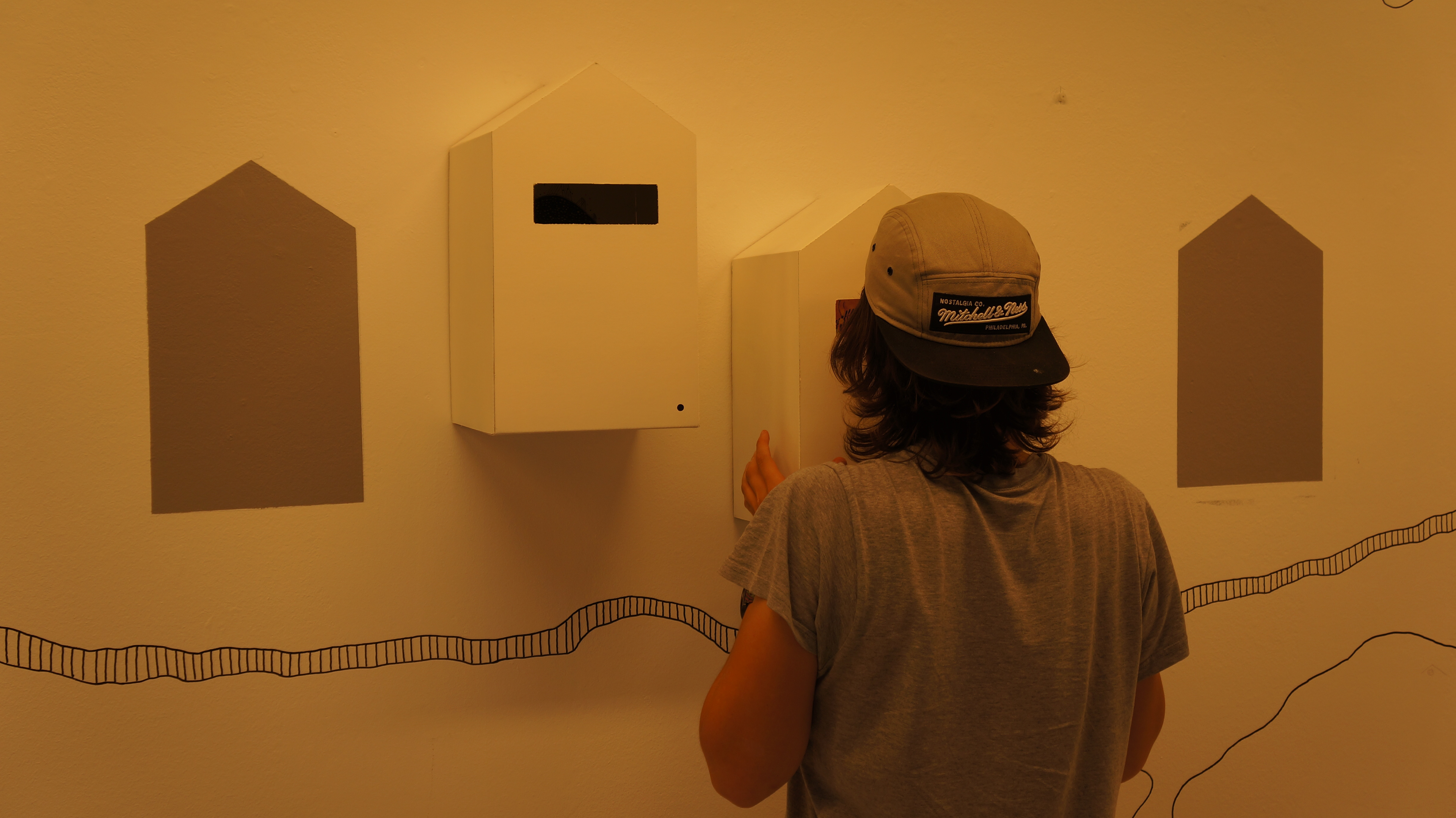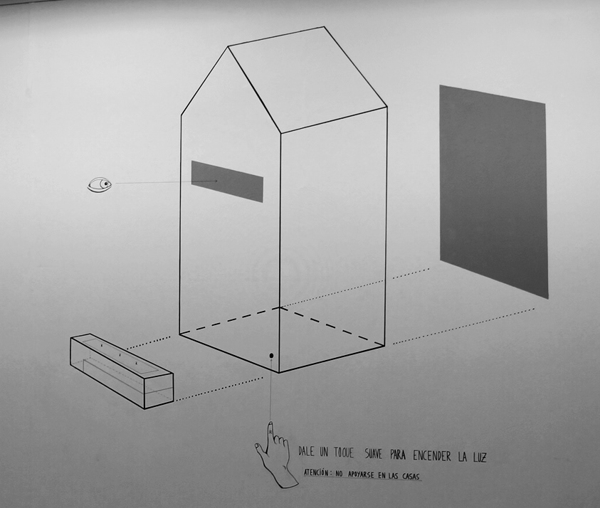 Esta es mi colaboración para la exposición colectiva “Mapamundistas”, que este año reflexiona sobre los conceptos de territorio y desplazamiento. El colectivo "Y Yeluda" me ofreció participar en una muestra de 24 ilustradores, el tema: “Recorridos habitados”. Hay dos conceptos importantes en esta muestra: la casa, como lugar físico o mental al que pertenecemos o sentimos que pertenecemos, y el camino como el recorrido inevitable que realizamos cada día ya sea hacia un lugar físico y existente o hacia un estado emocional. Cada ilustración se colocó dentro de una casita blanca, así que para poder verlas el espectador ha de encender una luz y mirar por una mirilla.