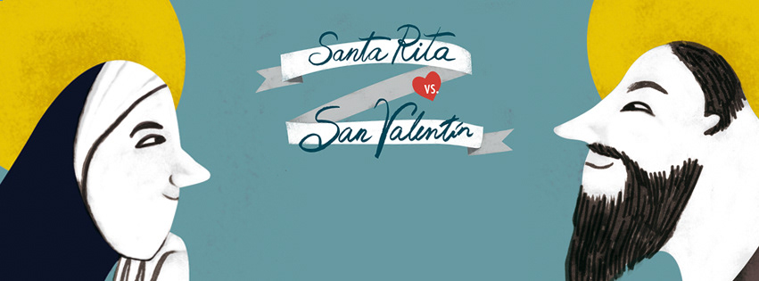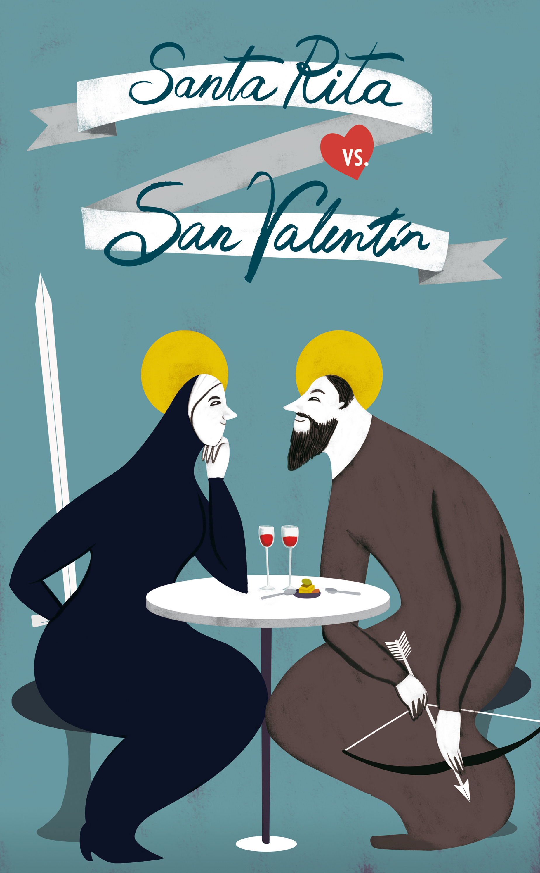 Santa Rita vs. San Valentín.Ilustración promocional para la cena de San Valentín en el Club Gastronómico santa Rita.