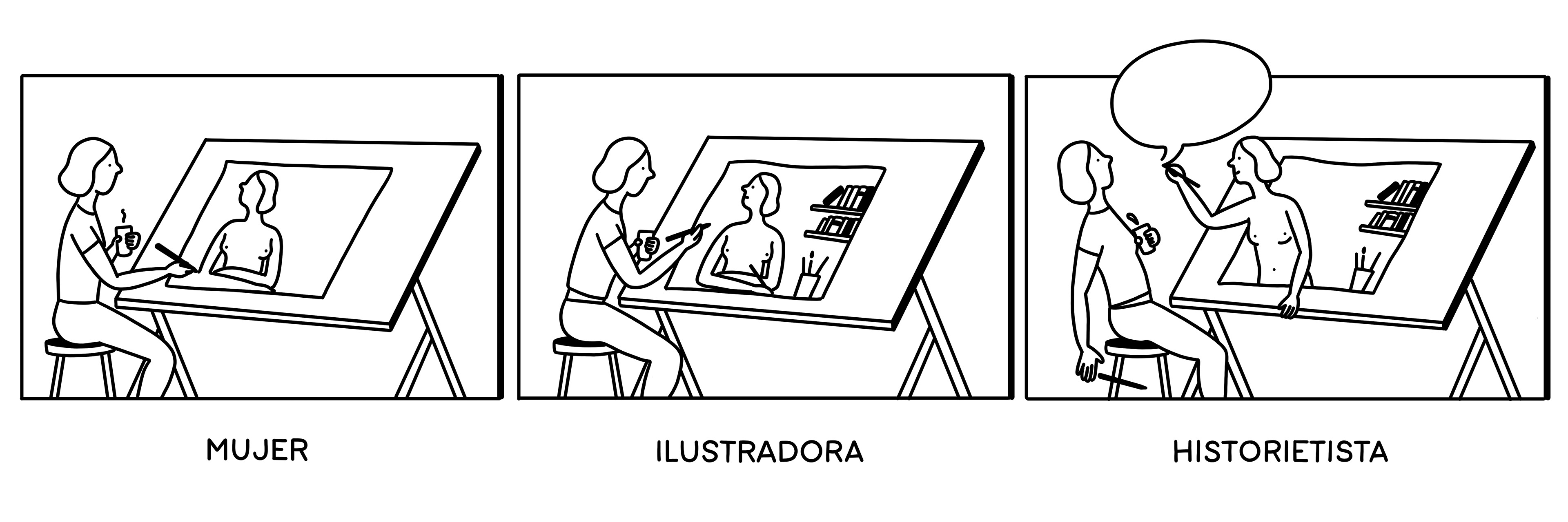 The artist Andrea Ganuza and I were invited to think about women, illustration and storytelling through drawing and comics. I made this comic strip to illustrate it. We also gave a live talk.